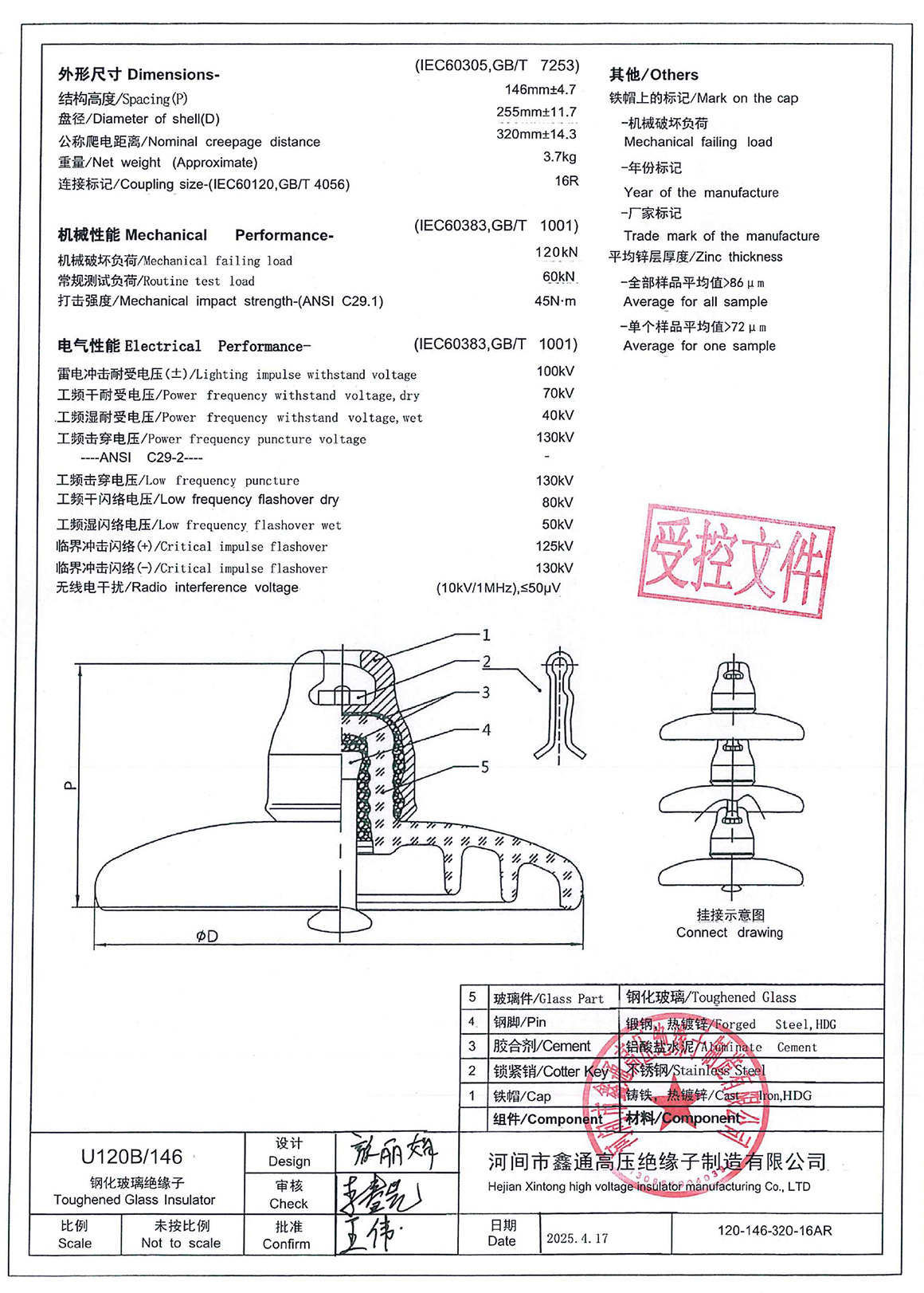 U120A is a standard disc-shaped suspension tempered glass insulator designed specifically for high-voltage transmission lines, which plays a critical role in insulation and suspension of conductors in power systems. Its core advantages are reflected in mechanical performance, electrical performance, thermal stability, and maintenance convenience.
