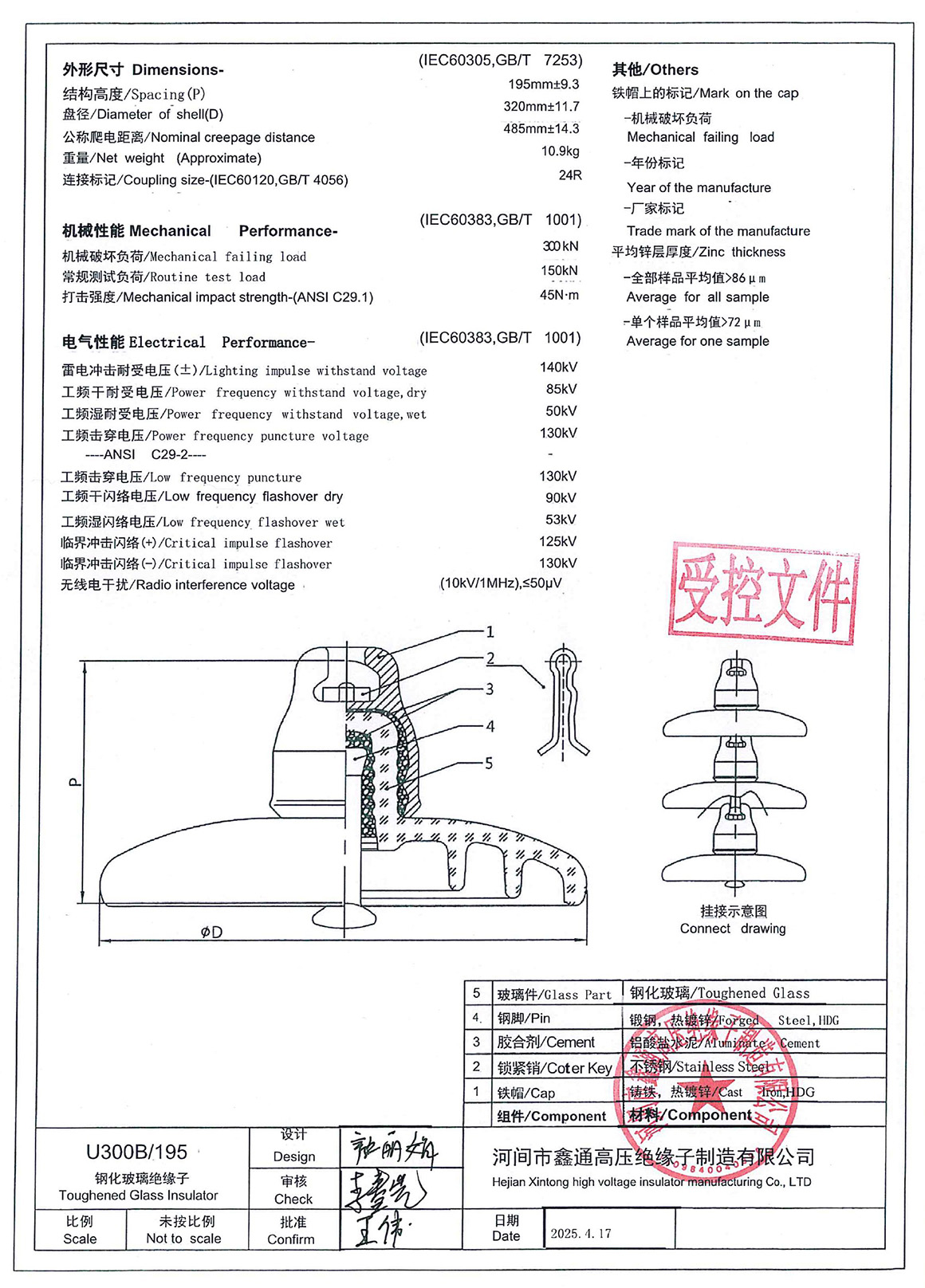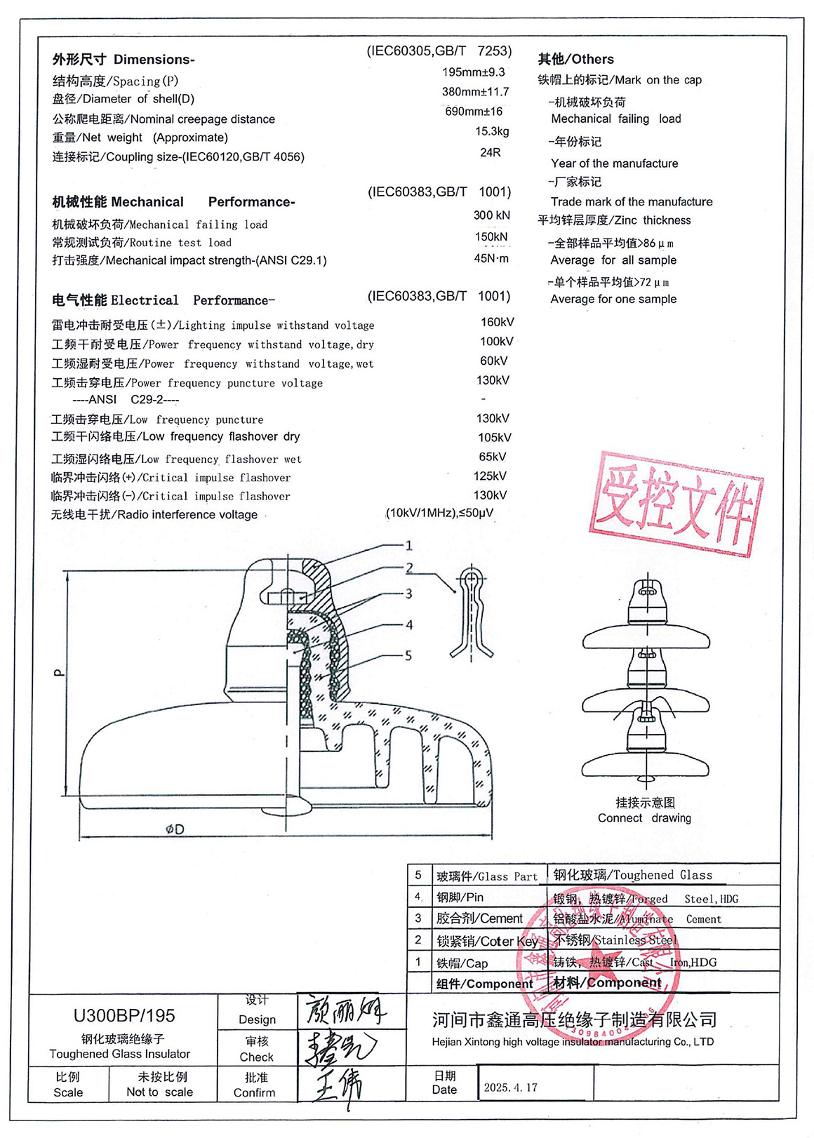Compared to porcelain insulators, U300B is lighter in weight, smaller in size, easier to transport and install, and has 1-2 times higher mechanical strength.